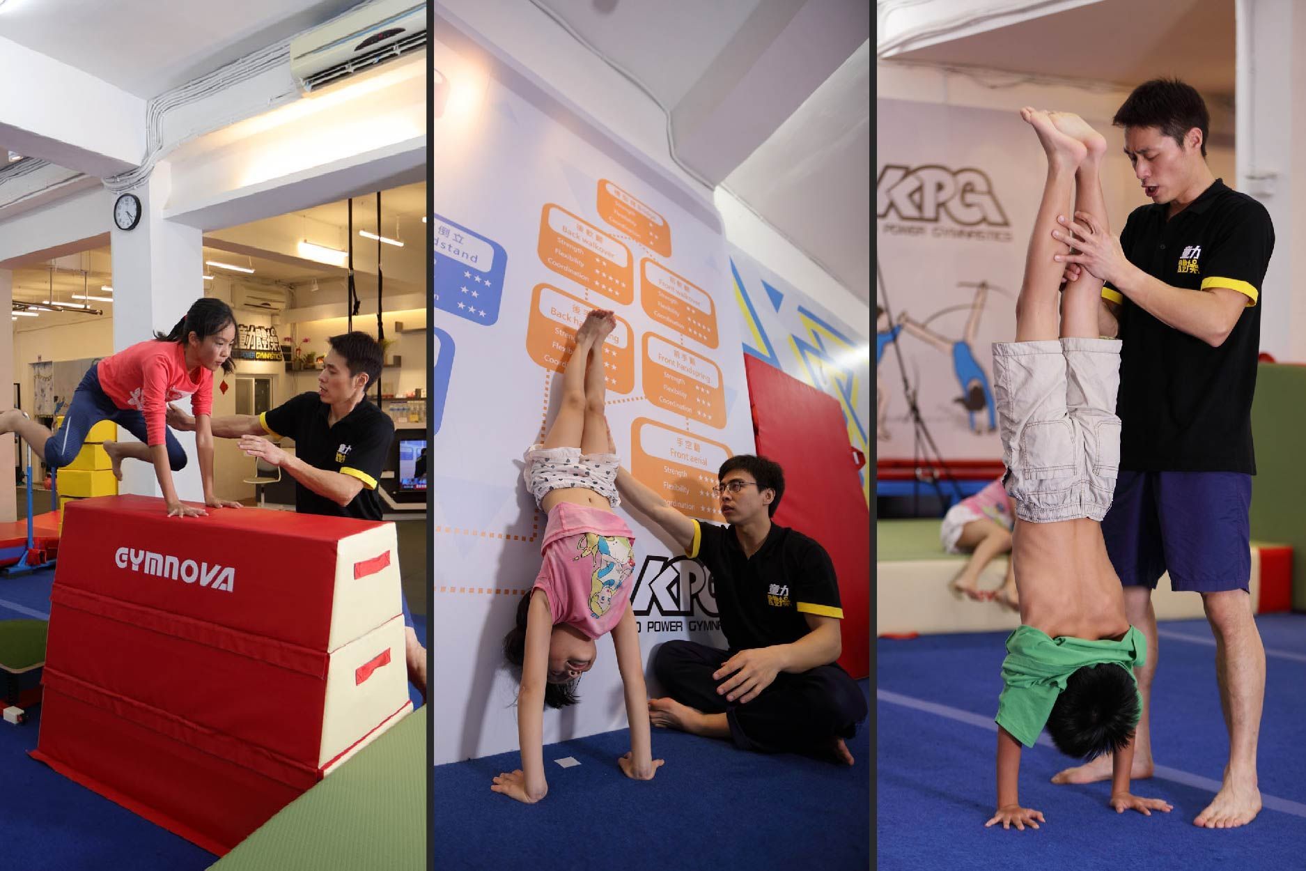 藉由基礎的體操動作提升兒童翻、滾、爬、跳的能力,替學員在未來的運動中奠下良好基礎;並請利用單槓、平衡木、彈翻床等專業器材,鍛鍊小朋友的肌力、平衡感及協調性。